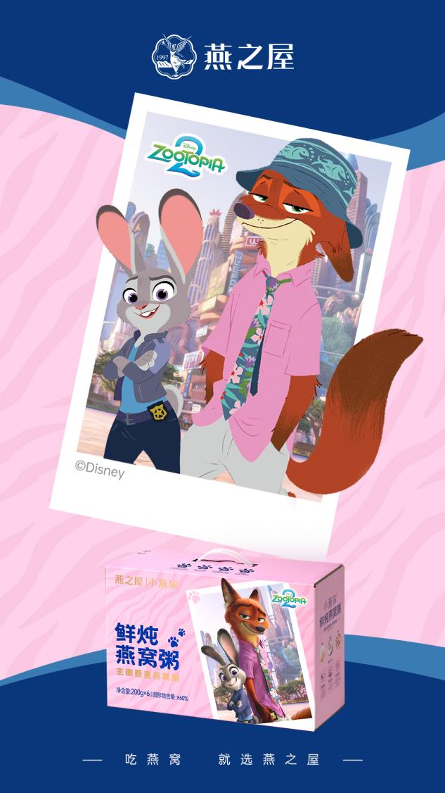 燕之屋聯(lián)合迪士尼《瘋狂動(dòng)物城2》甜蜜官宣,限定燕窩粥活力全開